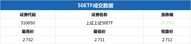 4月21日,上证上证50ETF收报2.711元,下跌0.009点,跌幅0.33%,盘中最高触及2.732元,最低触及2.711元,成交金额17.14亿元。