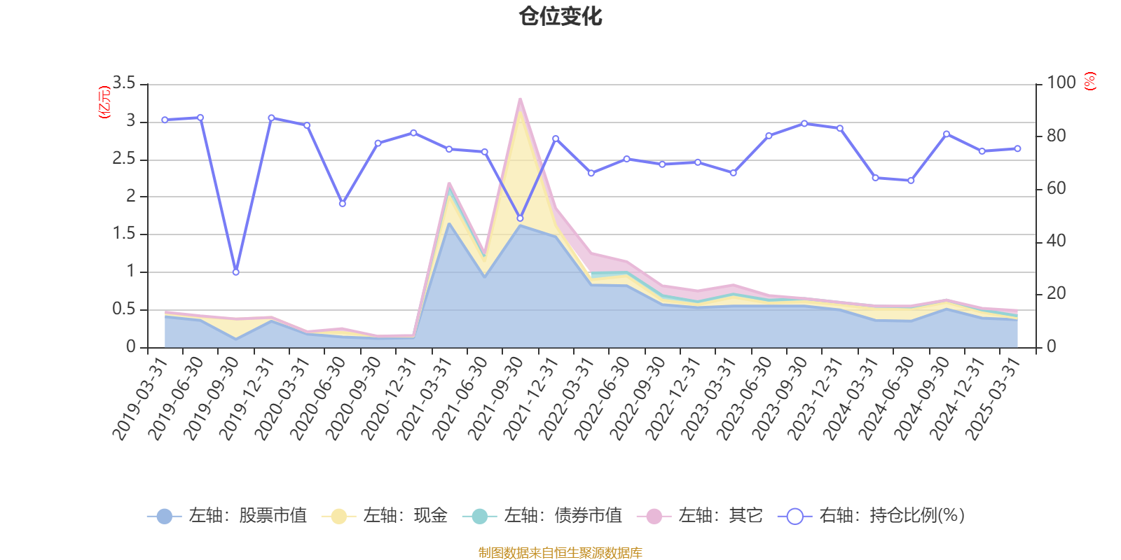 据定期报告数据统计,近三年平均股票仓位为73.76%,同类平均为80.15%。2019年上半年末基金达到87.28%的最高仓位,2019年三季度末最低,为28.62%。