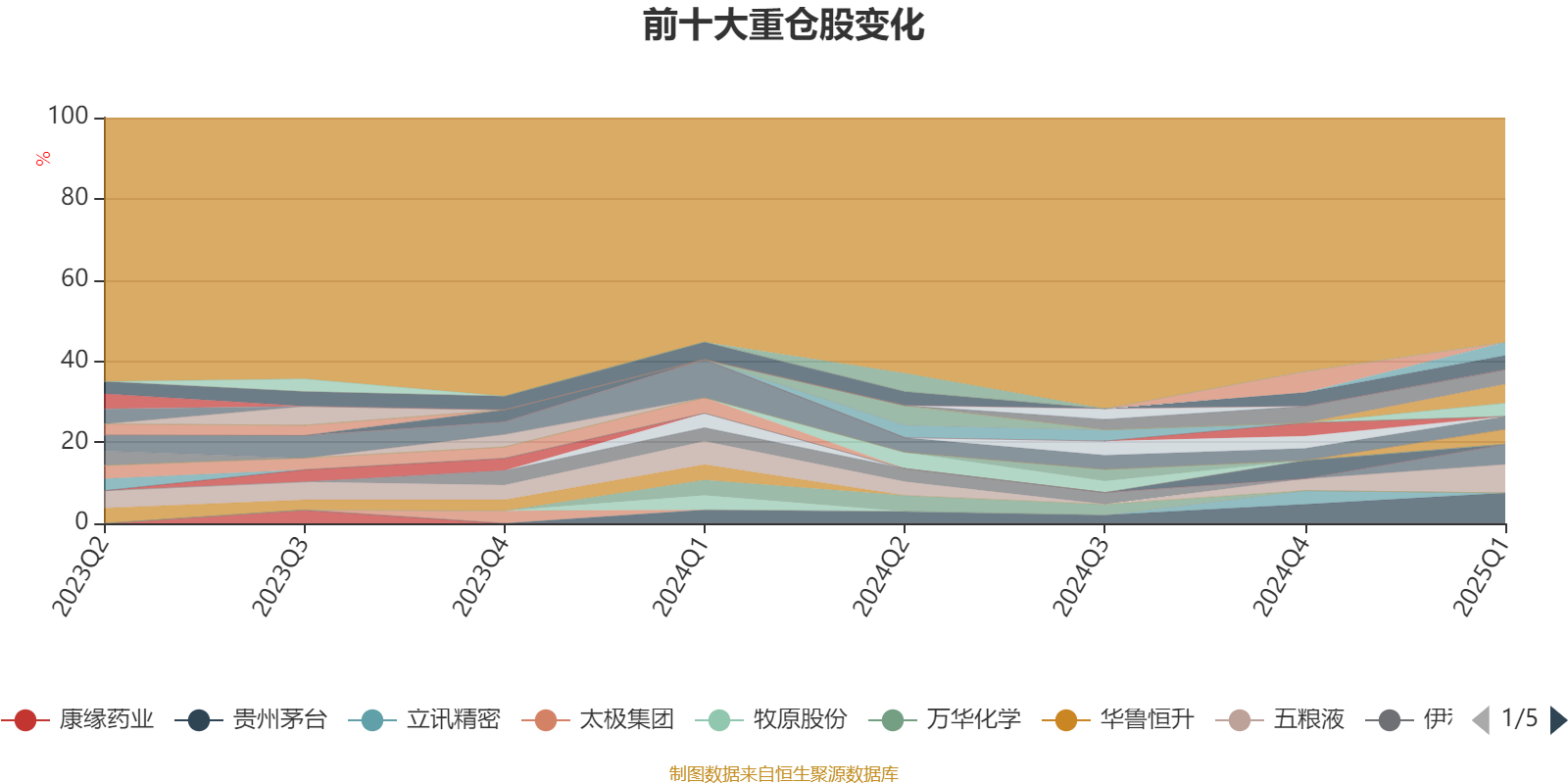 截至2025年一季度末,基金十大重仓股分别是贵州茅台、五粮液、格力电器、新华保险、阳光电源、紫金矿业、美的集团、恒瑞医药、人福医药、宁德时代。