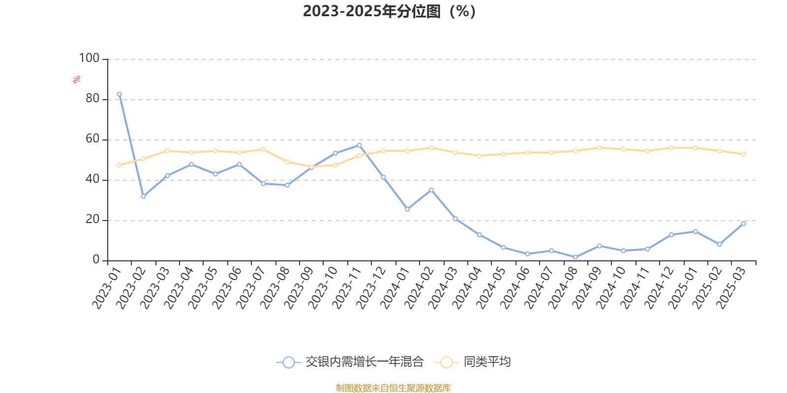 通过所选区间该基金净值增长率分位图,可以观察该基金与同类基金业绩比较情况。图为坐标原点到区间内某时点的净值增长率在同类基金中的分位数。