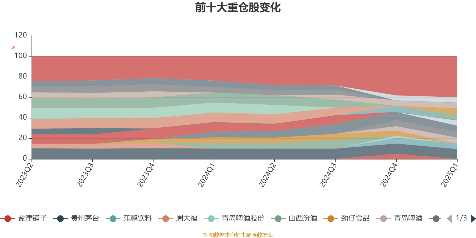 该基金持股集中度较高,近2年前十大重仓股集中度长期超过60%。截至2025年一季度末,基金十大重仓股分别是贵州茅台、稳健医疗、古井贡酒、青岛啤酒、燕京啤酒、东鹏饮料、药明康德、乖宝宠物、泸州老窖、海澜之家。
