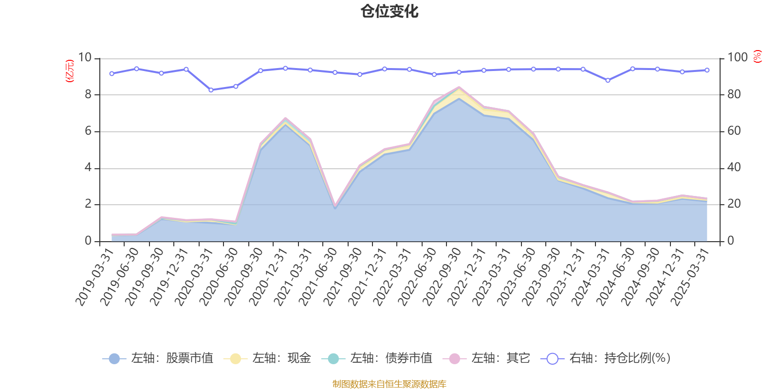 据定期报告数据统计,近三年平均股票仓位为92.99%,同类平均为80.15%。2020年末基金达到94.57%的最高仓位,2020年一季度末最低,为82.7%。