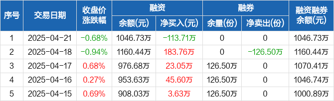 饮食ETF:融资净偿还113.71万元,融资余额1046.73万元(04-21)