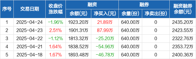 5GETF:融资净买入21.89万元,融资余额1923.2万元(04-24)