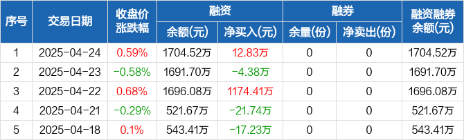 红利低波100ETF:融资净买入12.83万元,融资余额1704.52万元(04-24)