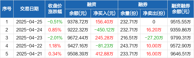 养殖ETF:融资净买入156.4万元,融资余额9378.72万元(04-25)