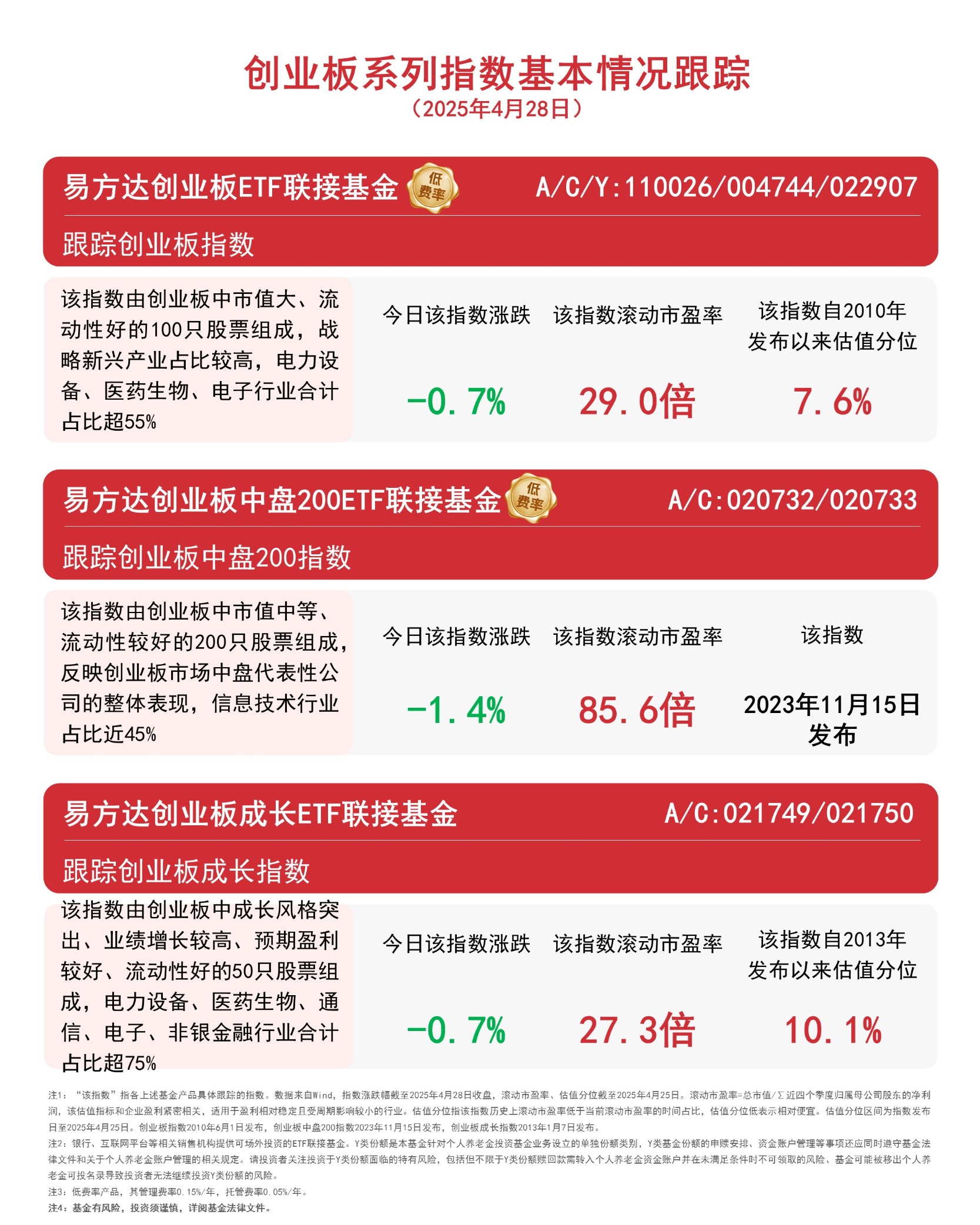 创业板今日回调,关注易方达创业板ETF联接基金(A/C/Y:110026/004744/022907)等产品配置机会