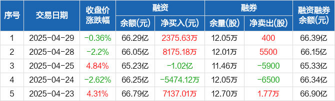 中际旭创:融资净买入2375.63万元,融资余额66.29亿元(04-29)
