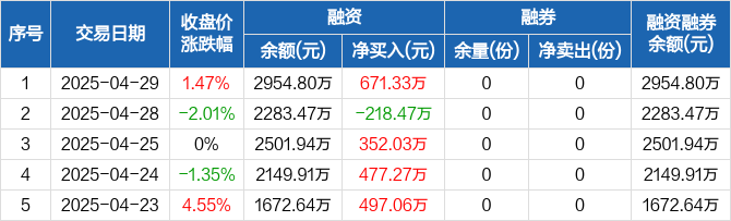 机器人ETF易方达:融资净买入671.33万元,融资余额2954.8万元(04-29)