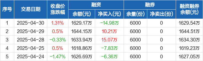 信息技术ETF:融资净偿还14.98万元,融资余额1629.17万元(04-30)
