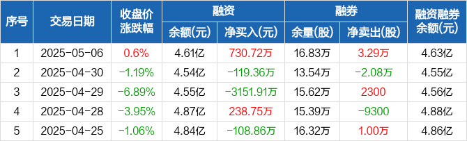 益生股份:融资净买入730.72万元,融资余额4.61亿元(05-06)