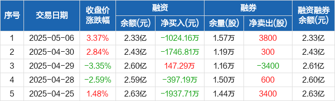 电连技术:融资净偿还1024.16万元,融资余额2.33亿元(05-06)