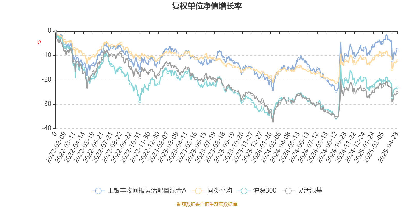 截至4月23日,工银丰收回报灵活配置混合A近三个月复权单位净值增长率为-0.76%,位于同类可比基金67/108;近半年复权单位净值增长率为2.28%,位于同类可比基金26/108;近一年复权单位净值增长率为9.92%,位于同类可比基金17/108;近三年复权单位净值增长率为8.94%,位于同类可比基金21/107。