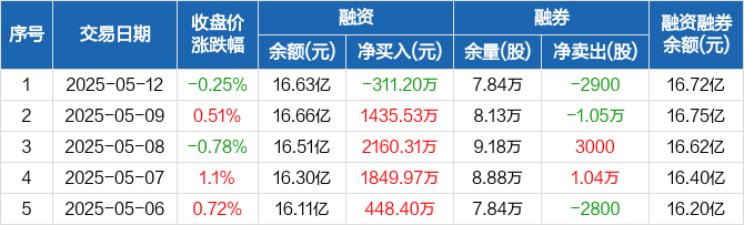 中国移动:融资净偿还311.2万元,融资余额16.63亿元(05-12)