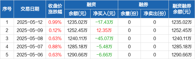 中国A50ETF:融资净偿还17.43万元,融资余额1235.02万元(05-12)