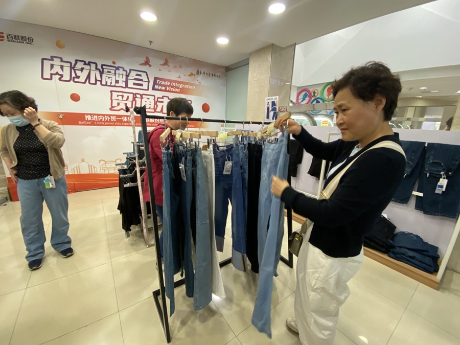 最近一周,出口转内销的牛仔裤销售火爆,门店对比库存数量和销售数据,很快发出了库存预警请宝玺集团赶紧发货。具体发哪些货,款式和码数怎么搭配,全都来自他们的指导。“可以说是手把手教他们开一家实体店,而这些经验未来都能再复制。”