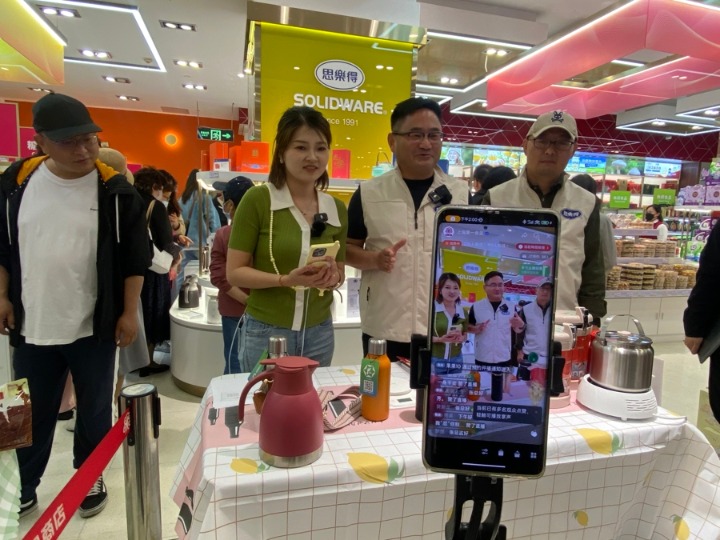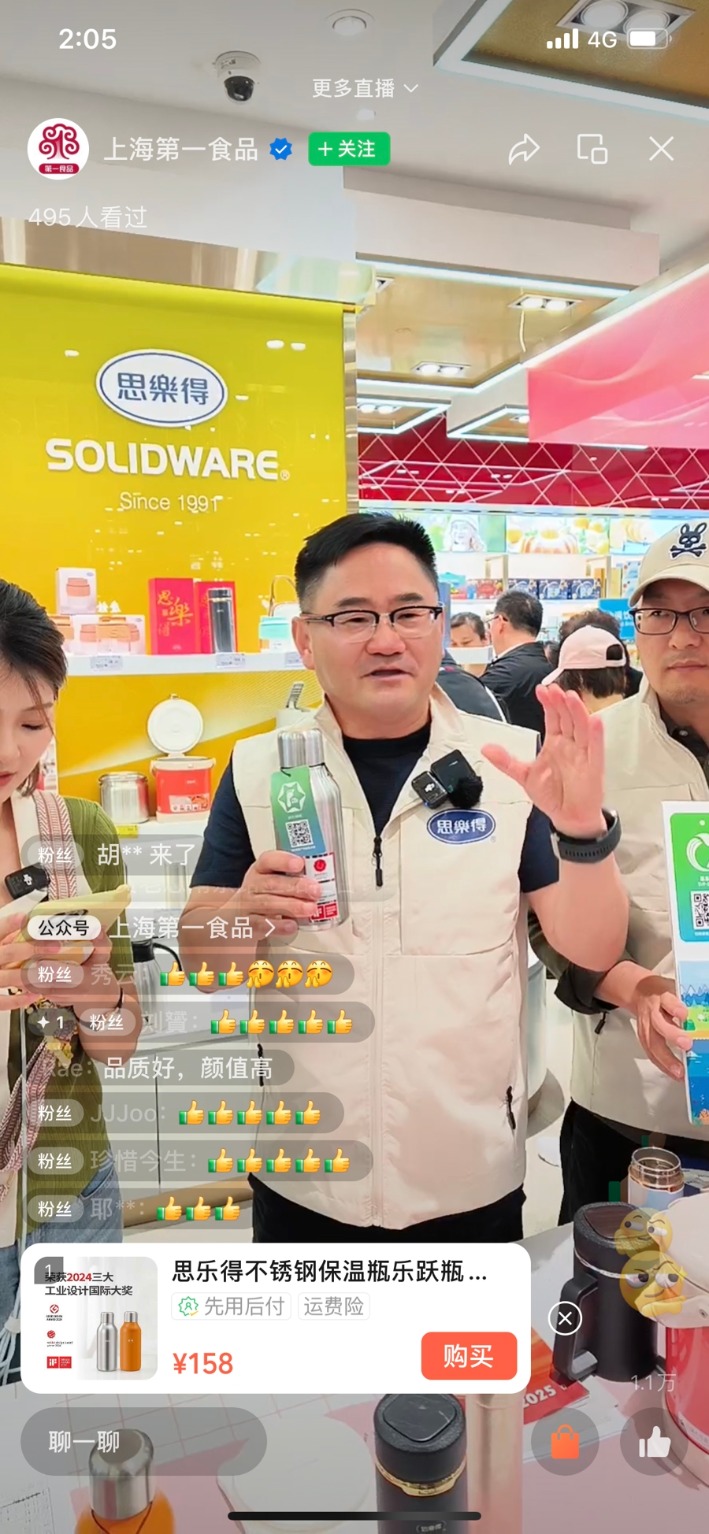 “从事杯壶行业34年,历经多个岗位历练,还没当过柜台营业员。5月11日下午,上海南京路,心怀忐忑当一回营业员,约吗?”5月9日,上海思乐得不锈钢制品有限公司总经理张斌发了一条朋友圈。母亲节当天,这位外贸老总不仅站柜台,还上直播,为自家的外贸优品代言。