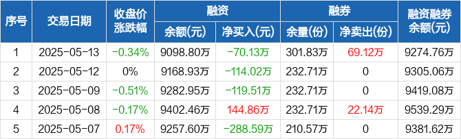 养殖ETF:连续3日融资净偿还累计303.66万元(05-13)