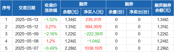 金融科技ETF:融资净买入239.31万元,融资余额1.34亿元(05-13)