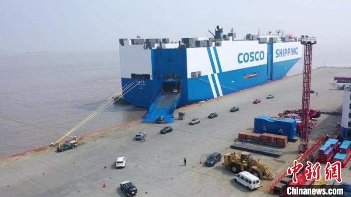 2月26日,在上海海关关员监管下,300余辆中国产汽车从上海外高桥港区海通码头出口秘鲁钱凯港。 (上海海关供图)