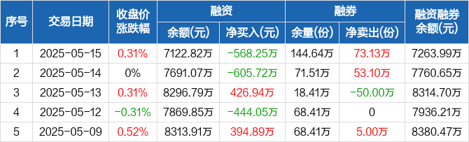 电力ETF:融资净偿还568.25万元,融资余额7122.82万元(05-15)
