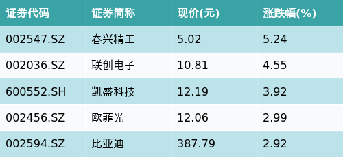 ETF最前线 | 华夏中证新能源汽车ETF(515030)早盘上涨0.97%,3D玻璃主题走强,春兴精工上涨5.24%