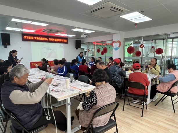 讲座结束后,活动进入轻松愉快的手工环节。在工作人员的指导下,居民们一起动手制作艾草养生锤。艾草清香弥漫,大家边聊边做,不仅学习了艾草的养生功效,还感受到传统文化的魅力。小小的养生锤既是对健康生活的祝福,也为清明节增添了温馨的氛围。