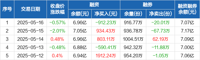 芯片ETF:融资净偿还912.23万元,融资余额6.96亿元(05-16)