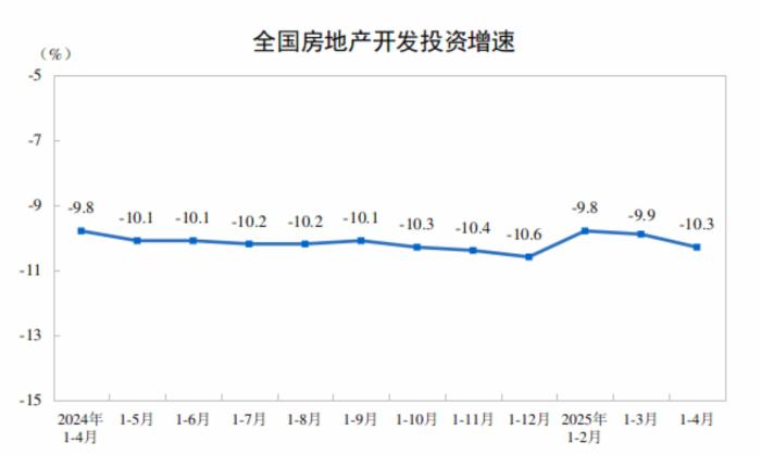 1—4月份,全国房地产开发投资27730亿元,同比下降10.3%(按可比口径计算,详见附注6);其中,住宅投资21179亿元,下降9.6%。