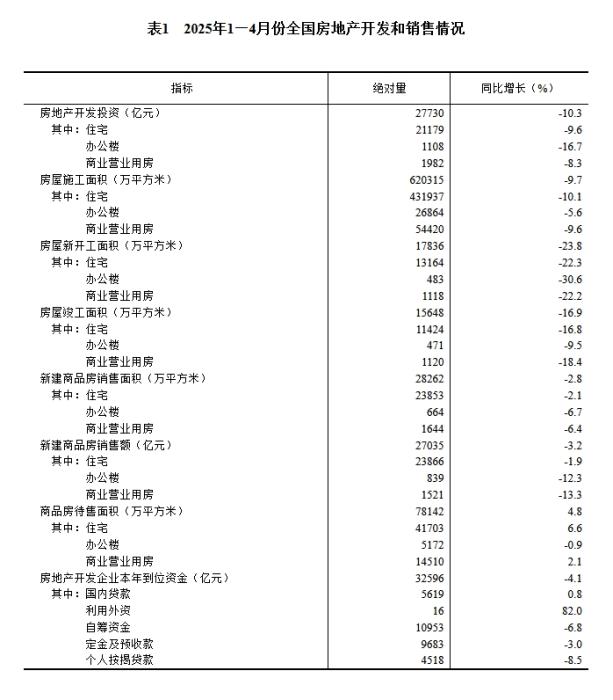 中新网5月19日电据国家统计局网站消息,2025年1—4月份全国房地产市场基本情况发布。