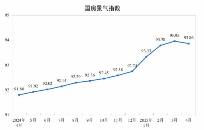 4月份,房地产开发景气指数(简称“国房景气指数”)为93.86。