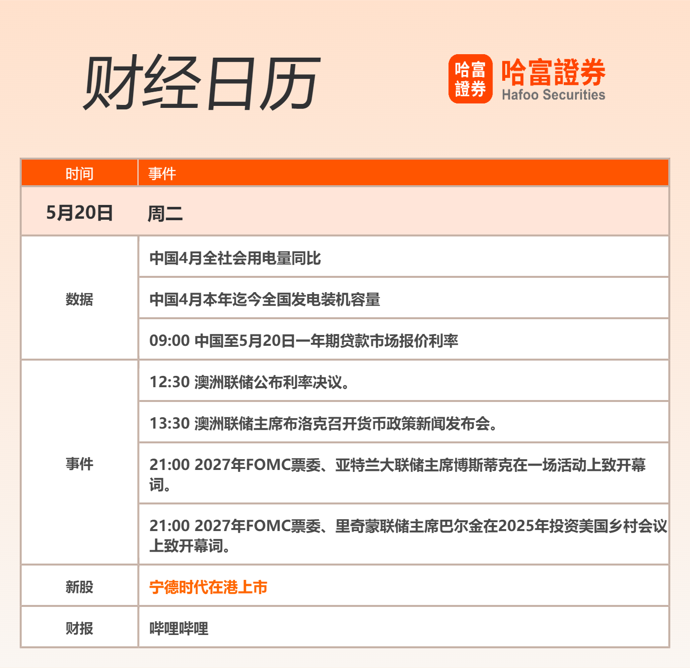 财经日历: