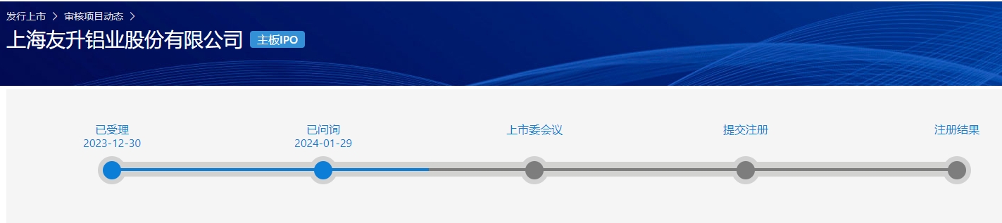 5月19日,上交所官网显示,上海友升铝业股份有限公司(简称“友升股份”)更新招股书。此前,友升股份主板IPO于2023年12月30日获得受理,2024年1月29日进入问询阶段。此次友升股份拟募集资金约24.71亿元,拟投资于云南友升轻量化铝合金零部件生产基地项目(一期)、年产50万台(套)电池托盘和20万套下车体制造项目、补充流动资金。