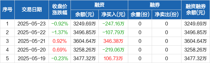 新能源ETF:融资净偿还247.16万元,融资余额3249.69万元(05-23)