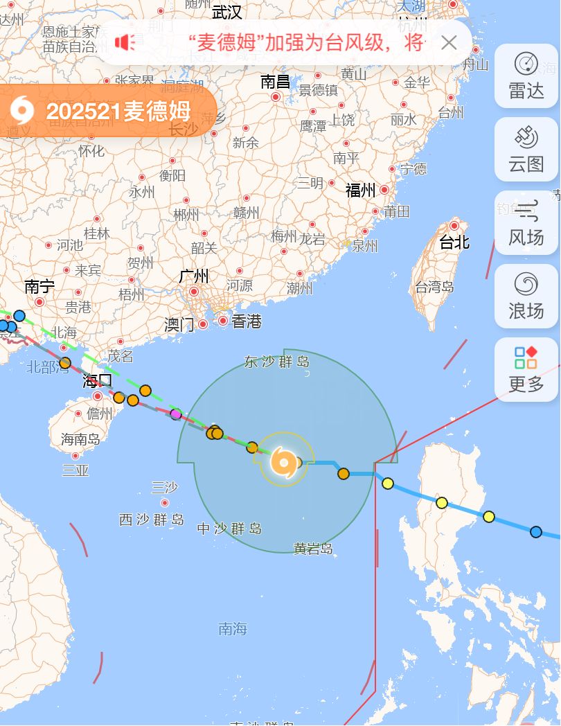 假期刚到半,又有台风来“捣乱”。台风“麦德姆”瞄准广东至海南一带,我国华南地区及南海将有明显风雨影响。