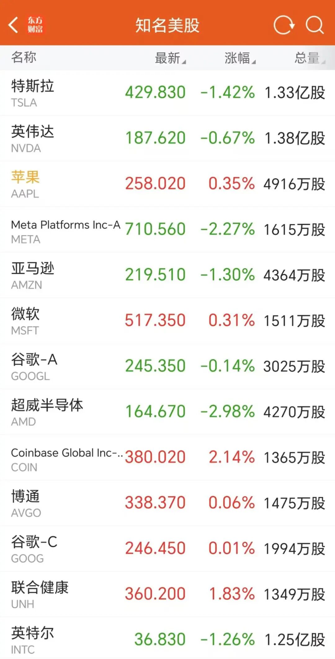 热门科技股多数下跌,AMD跌近3%,Meta跌超2%,特斯拉跌超1%,英伟达跌幅不足1%。苹果涨0.35%。减肥药概念、加密矿企涨幅居前,Coinbase、礼来涨超2%,诺和诺德、辉瑞涨超1%。