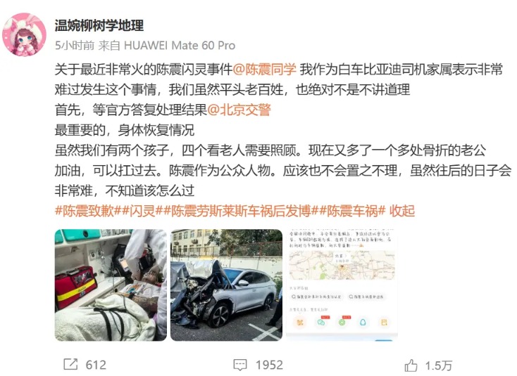 比亚迪车主多处骨折,其妻发声:往后日子不知怎么过!陈震车祸后再度致歉