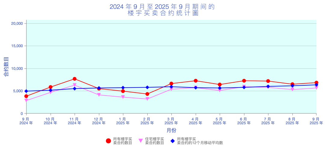 正如陈茂波提到的,今年以来,香港本地住宅物业市场趋稳。香港土地注册处最新统计数据显示,今年9月,香港楼宇买卖合约共6870份,按月升6.3%,按年升78.8%;合约总值535亿元,按月升11.9%,按年升93.4%。其中,住宅楼宇买卖合约占5643份,按月升6.7%,按年升98.1%;合约总值472亿元,按月升11.9%,按年升126.6%。