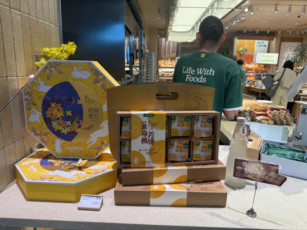 在沈阳市浑南区一家门店中,杂粮月饼被摆放在显眼位置。新华社记者洪可润摄
