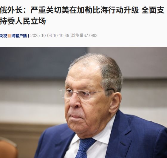 据央视新闻,俄罗斯外交部长谢尔盖·拉夫罗夫与委内瑞拉外交部长伊万·希尔10月5日通电话,对美国在加勒比海域行动升级表示严重关切。
