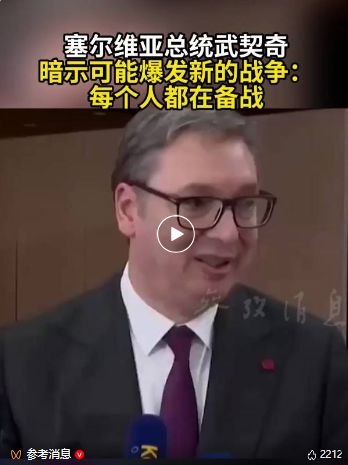 另据参考消息援引外媒10月4日报道,塞尔维亚总统武契奇表示,目前所有人都在为战争做准备,他表示担心,可能爆发新的战争。