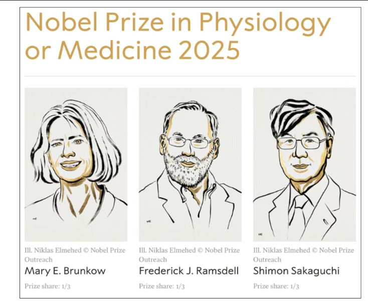 2025年诺贝尔生理学或医学奖授予两位美国科学家、一位日本科学家