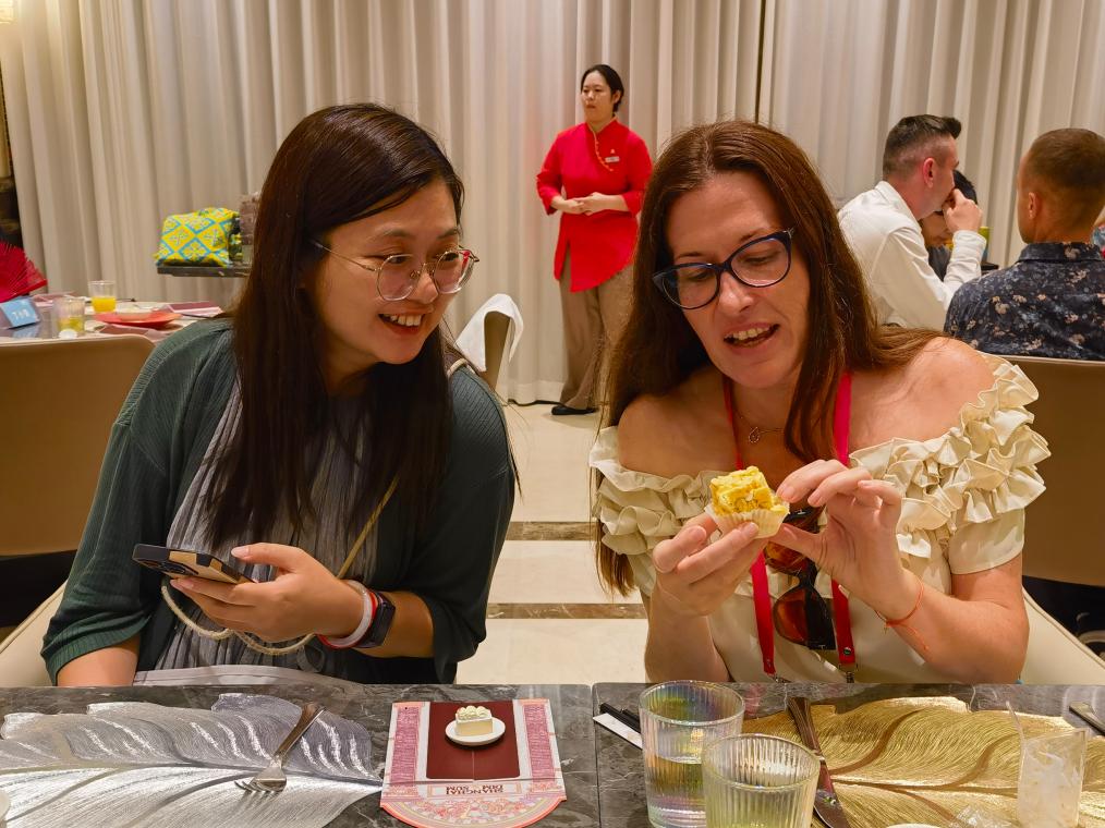 9月14日,来沪“入境观察员”品尝各类上海小吃。新华社记者陈爱平摄