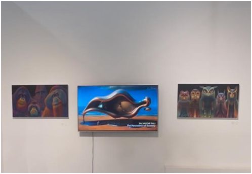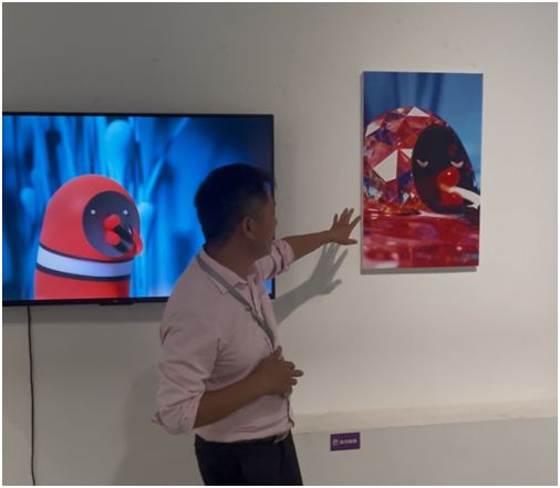 继续往展区深处走,我注意到很多画作旁边都播放着视频,这是艺术家们把自己的作品通过AI再创作,生成新画作、装置甚至是微电影等。
