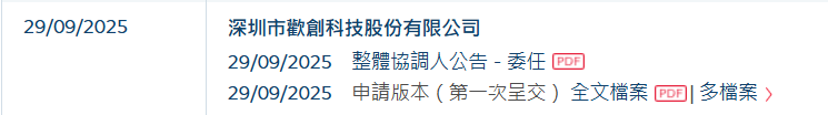 港交所官网信息显示,深圳市欢创科技股份有限公司(欢创科技)9月29日在港交所递交招股书,准备在港交所上市,联席保荐人为中金公司、国信证券(香港)。欢创科技是一家高精度空间感知解决方案的公司,凭借AI技术构建智能空间感知体系,为智能机器人提供高精度算法及相关硬件。