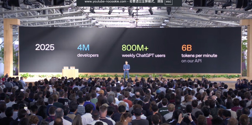 蓝鲸新闻10月7日讯(记者武静静)2025年10月6日,OpenAI在旧金山举行其第三届 DevDay 年度大会。宣布了四大重磅的更新,同时公布了关键的一些产品数据值得关注。