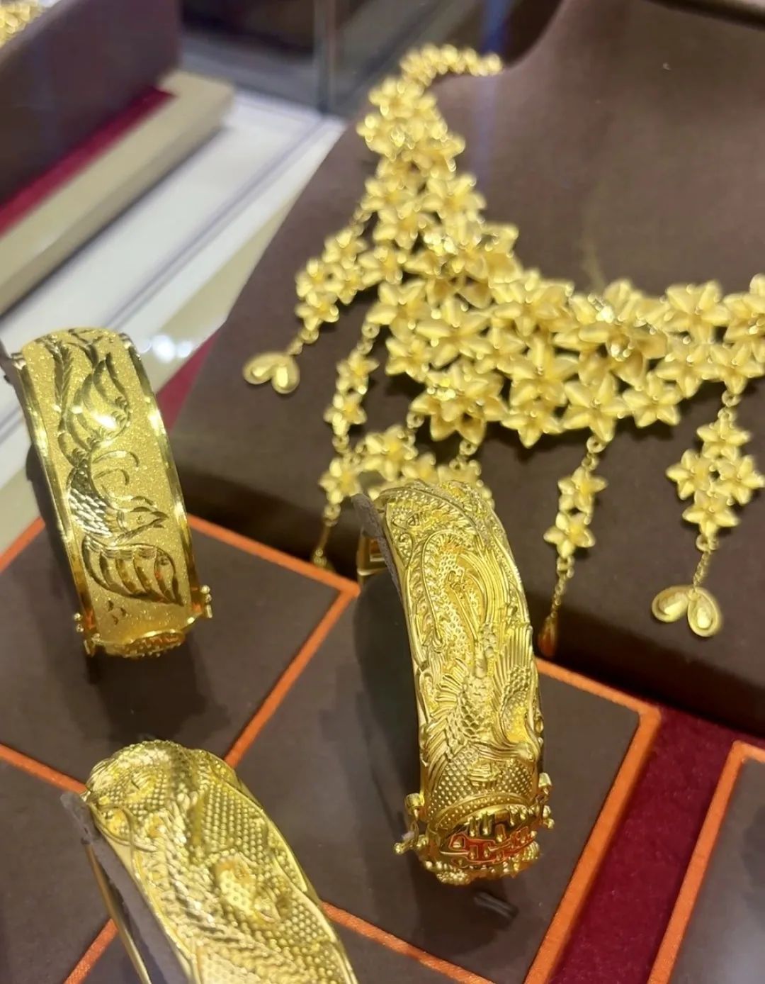 黄金首饰柜台中的婚嫁系列产品