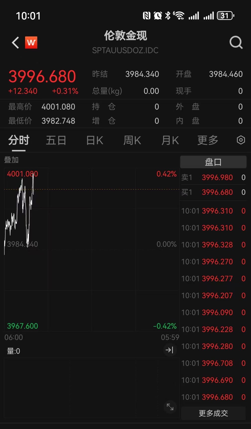 突破4000美元/盎司 伦敦现货黄金价格再攀新高