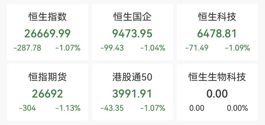 10月8日,港股三大指数小幅低开,恒生科技指数一度跌超2%,随后跌幅缩窄。截至午间收盘,恒生指数跌1.07%,国企指数跌1.04%,恒生科技指数跌1.09%