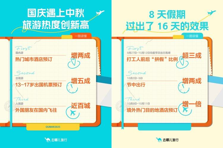 受益于长达8天的假期,来自携程发布的《2025国庆中秋双节旅游报告》显示,远途旅行与深度体验成为今年国庆中秋假期旅游的主要趋势。